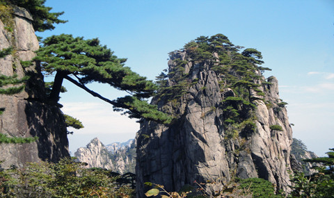 【始信峰景區(qū)】:“人間美景,到始方信”的黃山松代表景區(qū),黑虎松、連理松、龍爪松、探海松、神琴松。