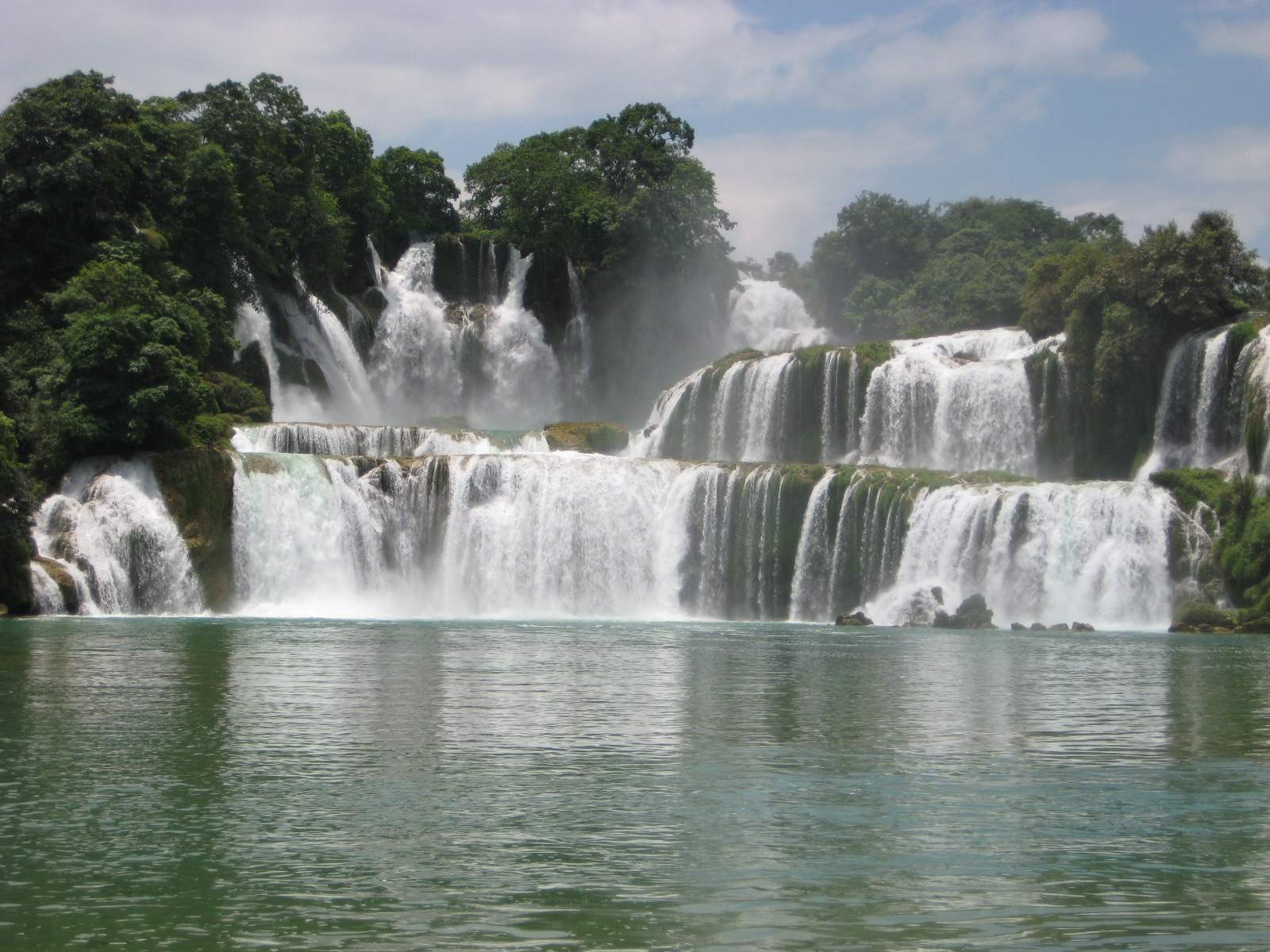 下午:中餐后;游覽德天跨國瀑布(徒步游覽約2H)。堪稱亞洲第一大的德天跨國瀑布,橫跨中越兩國,瀑布寬200多米,落差70多米,瀑布從高峻的石崖上、翠綠的石巖中傾泄而出,形成三層自然瀑布,遙望似素縞垂天, 近觀則白霧升騰、飛珠濺玉,氣勢磅礴,蔚為壯觀與緊臨的越南板約瀑布相連,同時還可觀賞到越南板約瀑布