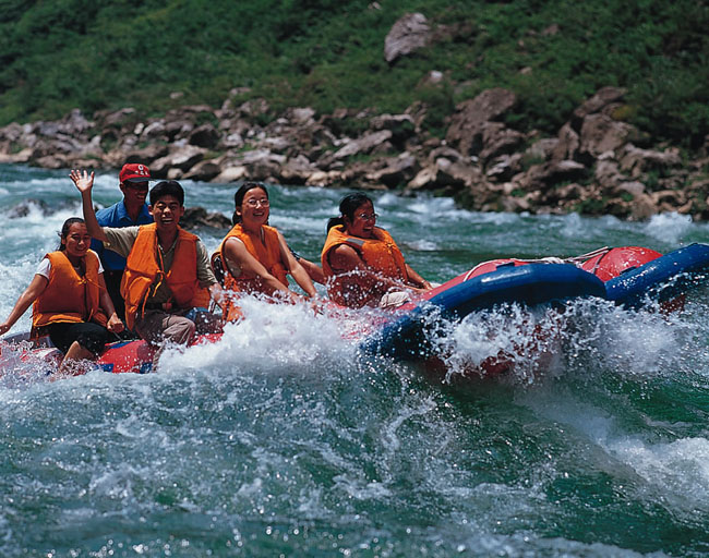 漂流專車接送散拼游,前往猛洞河(漂流費已含)猛洞河因“山猛似虎,水急如龍,洞穴奇多”而得名。起點哈妮宮—牛路河漂流水路長17公里,漂流兩個半小時。從哈妮宮放舟而下,一路是古老的河道,絕壁百里,怪石嶙峋,灘奇水異,兩岸蒼翠的林木,云霧繚繞,飛瀑流泉與溶巖峰林交相輝映。拐一百五十五個彎,在一百三十三個灘潭中穿梭而行,迂回流連,馳魂奔魄,心曠神怡。猛洞河漂流被著名的社會學家費孝通先生譽為“天下第一漂”,也被中國旅行社總社評為中國僅有的兩家四星漂流項目之一。