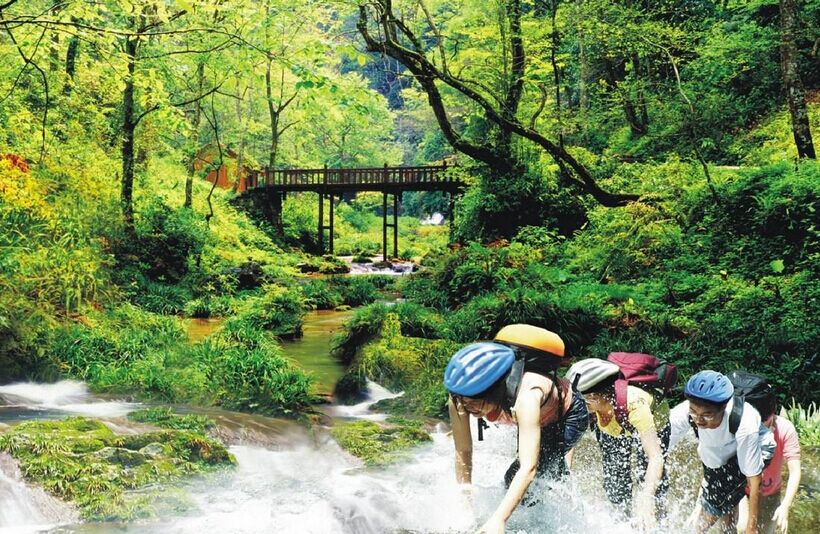 贈送明清時期的百年古寨【少數(shù)民族觀光古寨】感受滄桑的建筑,斑駁青石板路和原生態(tài)的壯族原住民風(fēng)情,都能給大家?guī)硪环葜档谜洳氐暮谜掌?。古老不寬的街道上鋪著青板,石板路兩邊是保存完好的老房子。古?zhèn)現(xiàn)在還保留著許多一批古老的手工作坊。感受侗族人的風(fēng)土人情,探尋民族銀匠精湛的工藝。乘車前往大圩,游覽桂林生態(tài)環(huán)保的典范及美譽為桂林九寨溝之稱【古東森林瀑布生態(tài)景區(qū)】(約3小時)景區(qū)融合了幽瀑、碧潭、紅楓取勝、原始生態(tài)、地質(zhì)奇觀、清新空氣集為一體的景區(qū),可親身體驗走瀑戲浪的桂林旅游新概念,感受桂林山水之神奇魅力。晚餐安排少數(shù)民族風(fēng)味自助餐