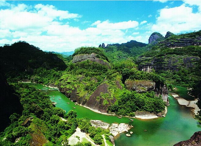 07:30叫早/08:00用餐,早餐后乘BUS(車程約10分鐘),乘竹筏暢游九曲溪漂流【已含漂流時間約130分鐘】(乘坐安穩(wěn)舒適,視野開闊,可見山景,能賞水色,漂流而下,既輕松愜意);游覽迄今已有一千多年的歷史的武夷山**古老的一座宮殿【武夷宮】、仿宋古街、三清殿、朱熹紀(jì)念館;前往南赤/北赤環(huán)保觀光車入口;【游覽虎嘯八景景區(qū)】(游覽約2.5-3小時左右):“虎嘯”之聲,來自巖上的一個巨洞,山風(fēng)穿過洞口,便發(fā)出怒吼,聲傳空谷,震撼群山,有“極目皆圖畫”的美稱,怪石崔嵬,流水迂回,是一個獨(dú)具泉石天趣的佳境,主要景點(diǎn)有天成禪院和虎嘯八景(虎嘯八景為白蓮游、集云關(guān)、坡仙帶、普門兜、法雨懸河、語兒泉、不浪舟和賓曦洞。新開辟的景點(diǎn)有觀景臺、荼屋、定命橋等);11:30-12:35用午餐;稍作休息,瀏覽全國**長**窄的【一線天】,是武夷的**奇的巖洞,素有“鬼斧神工之奇”的稱號,入住酒店