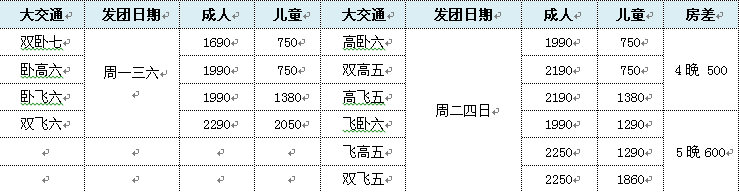②鑒于旅游旺季、黃金周期間,鐵路方面不能確保旅行社所預定車次和鋪位,因此,往返火車車次以實際出票為準,有可能變更為高鐵、軟臥、動車組等(去程準確車次請以出團通知為準,火車票差價現(xiàn)付送站人,返乘付給導游)
