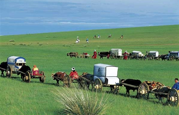接客人后前往廣闊無邊、天地一線的大草原【希拉穆仁草原】一路歡歌笑語,欣賞陰山山脈高原風(fēng)光。抵達(dá)后接受蒙古族*隆重的歡迎儀式--下馬酒,中午品嘗蒙古風(fēng)味---手扒羊肉;下午觀看“男兒三藝”之博客(摔跤)、賽馬表演、感受馬背民族文化—騎馬馳騁在遼闊的大草原,晚餐席間蒙古族姑娘銀碗哈達(dá)獻(xiàn)歌敬酒-蒙古族*高禮節(jié)。晚餐后參加民族歌舞篝火晚會(huì),學(xué)跳蒙古族舞蹈——安代舞,夜觀草原美麗星空.