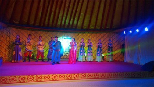 游覽【蒙古風情園】(游覽時間不少于1.5小時):訪問牧戶、做一次蒙古人,參加蒙古族古老習俗--祭拜敖包活動,品奶茶奶食,觀賞獨具特色的民族歌舞演出“敖包相會”;入住酒店后用餐,餐后自由活動。