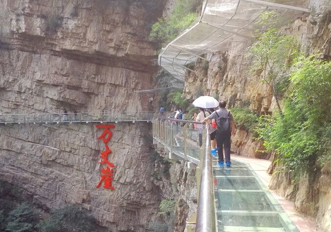 玻璃棧道全長(zhǎng)200多米。這條看著就讓人腿軟的玻璃棧道,給人帶來(lái)了極大的刺激,有的是扶著別人,有的貼著崖壁行走,有的是戰(zhàn)戰(zhàn)兢兢的。走在棧道上,藍(lán)天白云以及峭壁的倒影鋪滿(mǎn)了整條棧道,讓人在對(duì)腳下的透明戰(zhàn)戰(zhàn)兢兢之余,更樂(lè)享于踏云而行的快感。