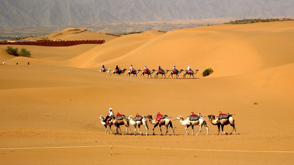 上午乘車(chē)赴中衛(wèi),下午游覽中國(guó)十大*好玩地之一【沙坡頭】(含沙漠大扶梯上行,游覽3小時(shí)左右):南區(qū)集黃河、沙山、綠洲為一體,蒼勁雄渾。北區(qū)為壯觀的騰格里沙漠,浩瀚無(wú)垠,長(zhǎng)長(zhǎng)的駝隊(duì),連綿不絕的沙丘,真切體會(huì)那“大漠孤煙、長(zhǎng)河落日”意境,沙海中盡情放松。