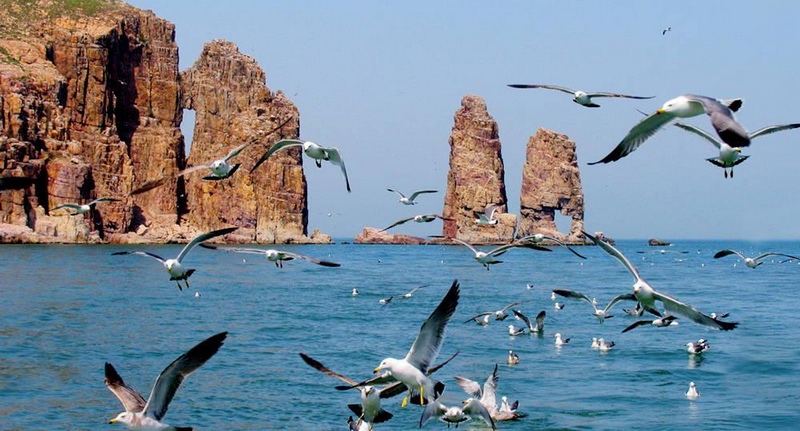 早餐后,乘車赴榮成,游覽素有“海鷗王國(guó)”之稱的--海驢島(乘船進(jìn)島上單程航程約20分鐘,島上游覽約2小時(shí))海驢島每逢春季,成千上萬的海鷗來此棲息產(chǎn)卵,巖縫中鳥巢鱗次櫛比,數(shù)不勝數(shù),島上威峰兀立,四周海水浩瀚碧藍(lán),與成千上萬只海鷗構(gòu)成的雄偉景觀,不僅令人嘆為觀止,神凝形釋,故海驢島有“海鷗王國(guó)”之雅號(hào)。海驢島相傳為二郎神當(dāng)年用扁單挑著一只雞和驢過海時(shí),因天將破曉,雞鳴驢嚎,不慎將雞和驢落入海中而化為雞鳴島和海驢島。海驢島是鳥的世界,登上海驢島,只見島上海鷗遍地。眾多的海鷗“咕咕”地叫著,像是歡迎我們游人的到來。由于島上尚無居民,也沒有其它天敵,故海鷗之繁衍越演越烈。有時(shí)一大群海鷗同時(shí)棲息在一塊巖礁上,必乎覆蓋了整個(gè)巖礁,遠(yuǎn)遠(yuǎn)望去,宛若一塊潔白的冰山呢……