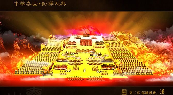 晚餐后觀看大型實景演出《中華泰山?封禪大典》D區(qū))(演出時間70-80分鐘), 山水實景演出以泰山歷史文化為核心,以泰山自然山水為背景,再現(xiàn)歷代帝王封禪泰山場景,演出通過樂舞傳承,跨越時空的界限,一展秦、漢、唐、宋、清歷代封禪大典或祭祀儀式的盛景。演出共80分鐘,以《金戈鐵馬——秦》、《儒風(fēng)雅樂--漢》、《盛世風(fēng)華--唐》、《藝術(shù)王朝--宋》、《康乾盛世--清》五個篇章構(gòu)成。