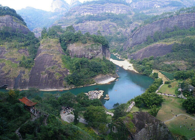 乘SC4879航班08:30--09:15赴武夷山,游覽武夷第一圣境【天游峰】(約3小時(shí))云窩、御茶園遺址、茶洞、小一線(xiàn)天、接筍峰、隱屏峰、仙浴潭、曬布巖、一覽亭、水月亭,可自愿自費(fèi)150元/人【九曲溪漂流】觀賞九曲兩岸綺麗風(fēng)光,及懸崖絕壁上遺留“架壑船棺”、虹橋板,上岸游覽武夷宮、仿宋古街、三清殿、朱熹紀(jì)念館、名人紀(jì)念館,晚品嘗武夷山特色風(fēng)味餐農(nóng)家宴