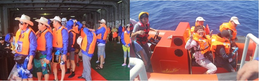 16:30-17:40參觀及介紹“椰香公主”輪,【逃生演習(xí)】 講解安全須知,救生衣穿著演示