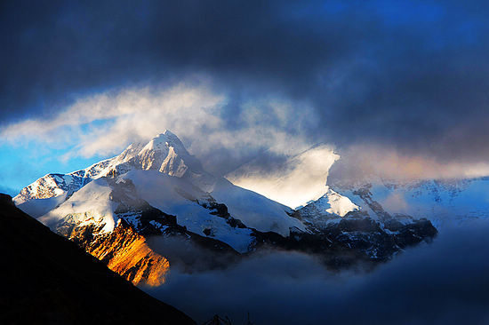 乘車385公里約10小時(shí)至珠峰大本營(yíng),經(jīng)拉孜至定日。拉孜,藏語(yǔ)為“光明*先照耀的金色峰頂”,是藏刀的原產(chǎn)地,可以買到*好的藏刀。稍做停留后趕往定日,中午在定日用餐,出發(fā)5公里處到達(dá)魯魯邊檢站,檢查邊防證和身份證,然后翻越達(dá)遮古拉山口,從這里可以看到4座8000米以上的雪山,依次為:珠穆朗瑪峰(海拔8844.43米),馬卡魯峰(8463米),洛子峰(8516米),藏語(yǔ)為“青色美貌的仙女”,卓奧友峰(8201米),藏語(yǔ)為“首席尊師”。從這里出發(fā)經(jīng)過(guò)峽谷、懸崖與怪石到珠穆朗瑪峰大本營(yíng),步行需2小時(shí),坐車只要15分鐘。看珠穆朗瑪峰*好是一大清早或傍晚時(shí)分,此時(shí)景色*是宜人
