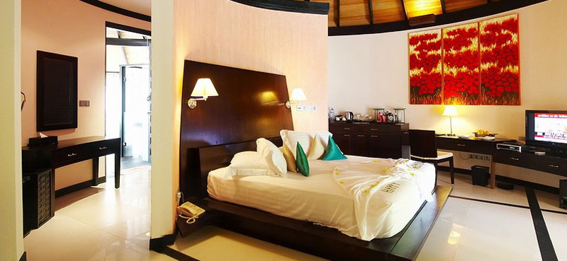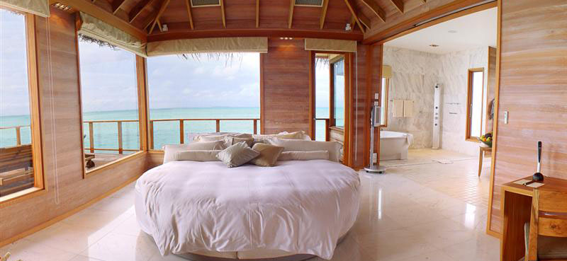 入住要求:3成人 每個木質的水上別墅都帶有一個私人的陽臺,CD播放器,茶具和迷你吧臺。沐浴設備包括全套的淋浴和一個海景浴缸。每套別墅都有一個大櫥。