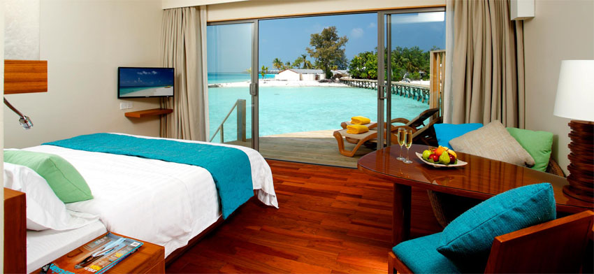 個內(nèi)設(shè)豪華水上別墅設(shè)置高于清澈透明的海水,提供寬敞的總居住面積42平方米和一套帶家具的陽臺??梢赃x擇大床或者雙床房,*多能住2成人+1小孩,可以從階梯直接走到海里。每個別墅套房設(shè)施享有露天淋浴,單獨控制空調(diào)、吊扇、平面屏幕電視與國際電視頻道和節(jié)目,DVD播放器、迷你吧、茶和咖啡制造設(shè)施、保險箱、吹風機、IDD電話線路和免費無線上網(wǎng)。
