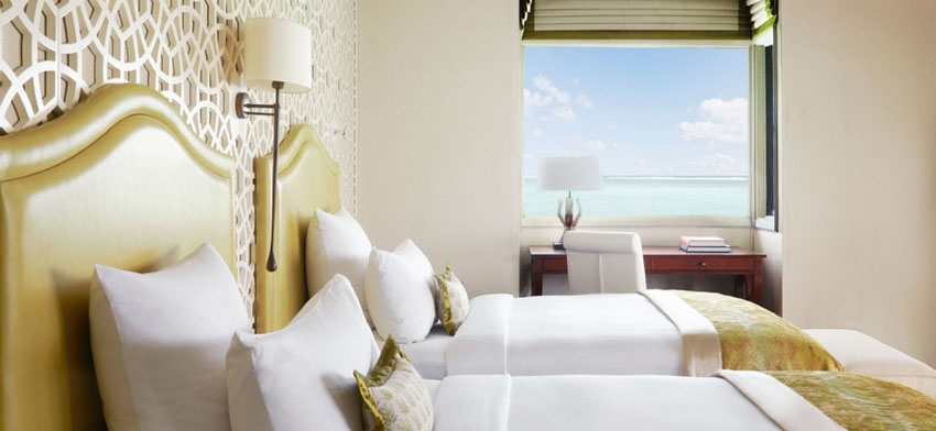與水上別墅不同的是,它們是獨幢別墅,而且房間內的裝修、裝飾更豪華一些。其中有4套帶有獨立的游泳池,可以欣賞到壯美的印度洋。 豪華海濱別墅朝向質樸的白色沙灘,遠處是低于沙灘、像綠寶石顏色一樣清澈的礁湖。