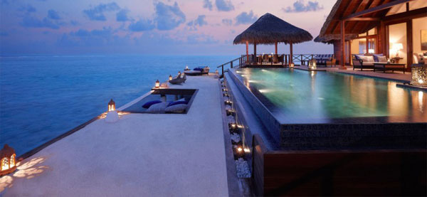 這是*豪華、*私密的房型。面積450平米,1個起居室,主臥有2個衛(wèi)生間和1個陽臺,1個客臥,1個玻璃浴室可以遠眺印度洋,1個15英尺的游泳池,1個日光浴甲板,2個涼亭可以在此用餐、玩耍。