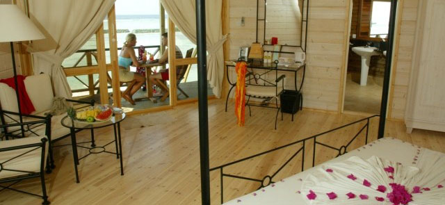 與美麗的礁湖僅幾步之遙。這個(gè)浪漫的別墅有著寬敞的臥室和客廳,同時(shí)還配有精美的鐵藝家具充滿異國情調(diào)。每棟別墅擁有設(shè)施齊全的陽臺(tái)、木甲板、按摩浴缸和寬敞幽靜的花園。由于兒童的政策,這個(gè)房間不適用未滿12歲的兒童預(yù)訂。