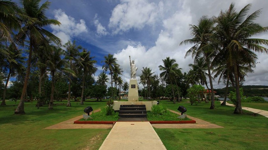 關島市區(qū)觀光:美國自由神像,自由女神像矗立在 Paseo de Susana 廣場前端,近旁是阿加納游艇碼頭。這座自由女神像是 1950 年由美國童子軍捐贈的紐約自由女神像的復制品,體積小了很多,而且為了配合當?shù)卦∶竦哪w色而漆成古銅色,讓當?shù)厝藗涓杏H切。圣母瑪利亞大教堂,圣母瑪莉亞教堂位于關島第一座天主教堂舊址。1669 年由帕德.圣維多利斯指導興建。正中央安置著傳奇的卡瑪琳女神的雕像 。 據(jù)說該雕像被漁民發(fā)現(xiàn)時,是由三支巨大的螃蟹背負著,一只背負著女神像,另二只則是各背負著一只蠟燭.還有,該神像的頭發(fā)每年都會生長.信徒每年皆會將該神像隆重的送回至梵諦岡.每星期日上午有許多人在此做禮拜。西班牙廣場,原為西班牙統(tǒng)治時期的總督官邸,現(xiàn)列為國家保護級的古跡之一。廣場中央的六角形涼亭是音樂廳,中亭還有一座巧克力屋,為昔日總督夫人宴請貴賓的場所。拉堤石公園,位在西班牙廣場旁的拉提石公園內(nèi)有8根拉提石柱,是從關島南部的MEPO地區(qū)移過來的,并不是古代建筑遺址。情人崖:情人崖位于關島杜夢灣北端突出的海崖,情人崖的斷崖的海拔有123公尺高,在情人崖上修筑了觀景臺,在觀景臺上可以利用其絕佳的眺望角度,可以覽盡整個杜夢灣優(yōu)美的海岸線,還可眺望菲律賓海的一望無際的海面。晚餐自理,然后入住酒店休息。