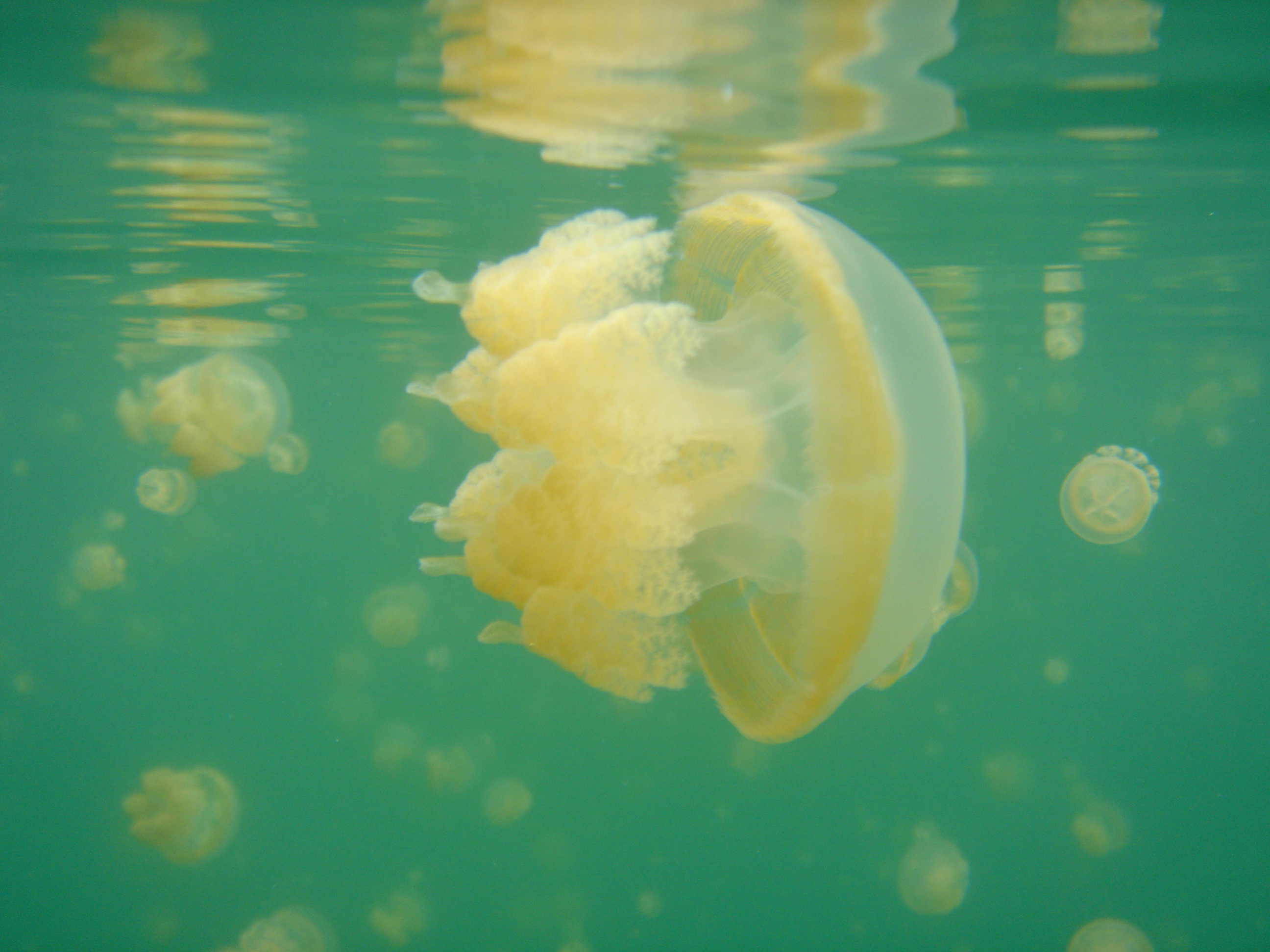 (2)在大斷層浮潛歸來之后,在長沙灘島上享用美味的BBQ午餐,退潮時海中央會露出綿延2公里細長的潔白沙灘,海洋猶如被分割兩半,是拍照的絕佳取景點哦!愛美愛拍照您前往不能錯過!離開長沙灘后乘快艇前往世界公認的七大奇觀之首的【水母湖】,翻過一座小山便能抵達,二戰(zhàn)時美軍偵察機飛過此地,發(fā)現湖面金光閃閃,以為是山中的寶藏,結果發(fā)現是由于湖中成千上萬的黃金水母在中午時分浮上水面進行光合作用。這些水母常年不受到外界天敵的威脅而退化到無毒。當你置身于成千上萬、大大小小、粉橘透明、軟軟Q彈的水母群之中,那感覺難以言喻的美妙,是前所未有的奇妙體驗!