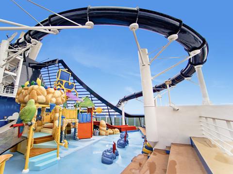 (4)以下的船上設(shè)施須由未成年人的父母或監(jiān)護(hù)人(需持有以上已經(jīng)簽署的規(guī)定文件) 陪同前往,并在現(xiàn)場(chǎng)監(jiān)護(hù):攀巖墻、Studio B(真冰溜冰場(chǎng):客人需要穿著長(zhǎng)褲和襪子方可參加溜冰活動(dòng))、高空滑索、模擬沖浪、水上樂園、直排輪滑道等(部分郵輪不含以上設(shè)施)。