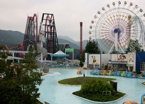 【富士急游樂園】 富士急樂園是一座坐落于富士山山麓的大型游樂園。以“FUJIYAMA”、“DODONPA”、“eejanaika”三座大型過山車為代表,擁有眾多驚險(xiǎn)刺激的游樂設(shè)施,深受游客歡迎。 “FUJIYAMA”過山車正如其名,是一座高大雄偉的白色過山車。它挑戰(zhàn)了多項(xiàng)吉尼斯紀(jì)錄,*高時(shí)速高達(dá)130km/h,*大落差70m,*后段高達(dá)79m,是富士急樂園的標(biāo)志性游樂設(shè)施。自1996年建成以來,一直保持著火爆的人氣。