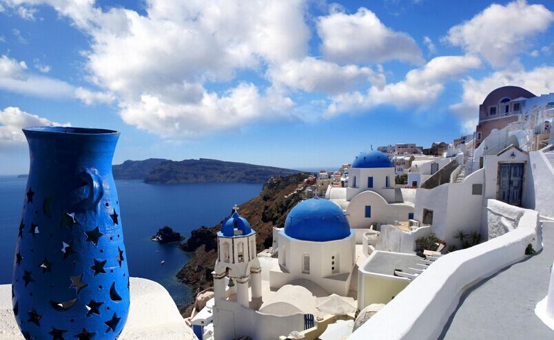 此天根據(jù)航班時刻集合,乘車前往機(jī)場飛往圣托里尼島;