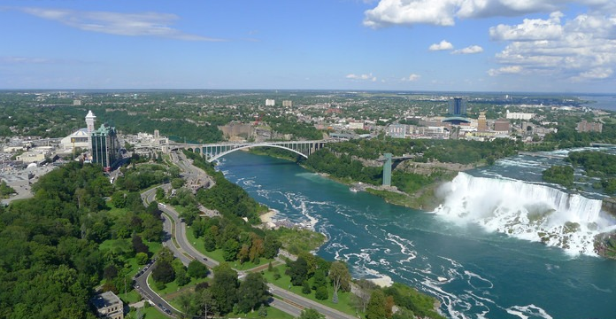 乘車前往布法羅(Buffalo)美國(guó)紐約州西部伊利湖東岸的港口城市,位于尼亞加拉河南口,西與加拿大伊利堡隔尼亞加拉河相望。旅美僑胞們常把這座城市叫做水牛城,因?yàn)椴挤_本是水牛的意思。不過此地從未見過水牛,古時(shí)倒是有野牛出沒,也是印第安人狩獵的地方。世界七大自然奇景之一的[尼亞加拉瀑布]游覽。尼亞加拉大瀑布被美國(guó)境內(nèi)的山羊島,分隔成兩部份,其中【美國(guó)瀑布】大約 328公尺寬,另有一支流,稱為【新娘面紗瀑布】終日發(fā)出萬馬不絕于耳的水聲,令人嘆為觀止。