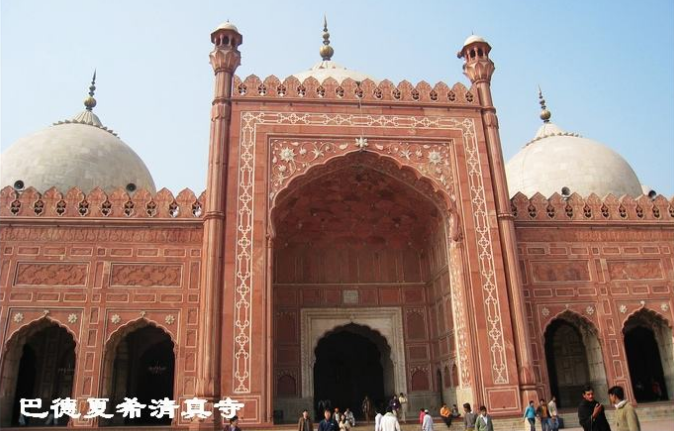 【巴德夏希清真寺】位于拉合爾市內(nèi)拉合爾堡旁邊的巴德夏希清真寺,曾經(jīng)是巴基斯坦最大的清真寺。清真寺在莫臥兒帝國皇帝奧朗則布時期興建,于1673年竣工。清真寺前的廣場,可以容納10萬人同時禮拜。 清真寺的建筑風(fēng)格屬于莫臥兒建筑風(fēng)格,由拱門、廣場、禮拜殿三部分組成,主體建筑為禮拜殿,殿頂及兩側(cè)有三個圓頂,在清真寺圍墻四角處,有四座高53.75米的宣禮塔。