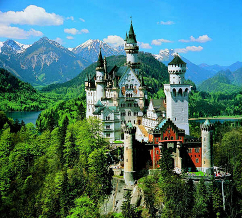 ★親臨童話般的新天鵝堡:新天鵝堡猶如圣潔高雅的白天鵝,在阿爾卑斯山脈中若隱若現(xiàn)。