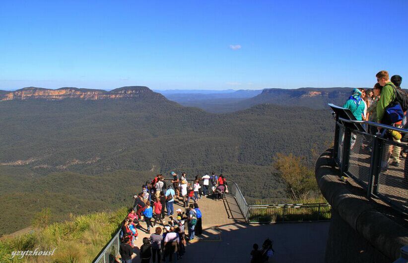 【埃科角與三姊妹峰】觀賞藍山標志性景觀三姐妹峰的*佳位置??平?,命名源于澳洲土著神話的三姊妹峰是3個依在一起的黃褐色的崖頭,造型也頗生動(停留約10分鐘)