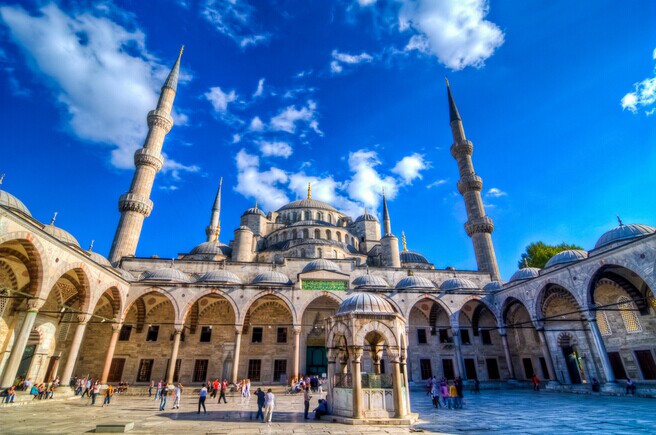 早晨飛往伊斯坦布爾,抵達(dá)后游覽托普卡泊老皇宮(游覽約1個半小時),圣索非亞大教堂(外觀15分鐘),藍(lán)色清真寺(游覽約30分鐘),古羅馬競技場以及埃及方尖碑(外觀約10分鐘)。隨后入住酒店休息。