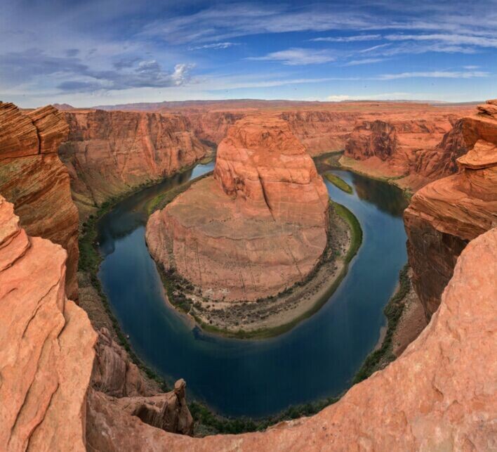 清晨驅車前往【馬蹄灣】1小時),馬蹄灣是科羅拉多河在此地270 度大回轉切割而成。這里讓人驚魂奪魄的,卻又屏息靜氣的。1000 英尺直下的懸崖下,綠色的科羅拉多河圍繞著紅色的馬蹄狀巖石,蜿蜒流淌出270 度的轉角,平靜而威嚴。站在懸崖邊俯瞰300 米下的科羅拉多河,不禁感嘆造物主神奇的魅力!隨后驅車前往【羚羊峽谷】1小時)。羚羊峽谷是地球上**著名的狹縫峽谷。由于沒有任何人造燈光裝置,游客的想象力沒有約束,而且在不同季節(jié)、不同時間可以看到不同的影像。造物主賦予羚羊峽谷不可思議的魅力,羚羊峽谷給了來此的游人以出乎意料的震撼、驚喜和想象力。之后抵達拉斯維加斯,入住酒店休息。