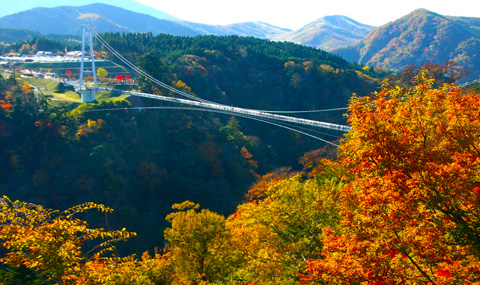 后驅(qū)車前往【九重夢(mèng)吊橋】(約70分鐘)游覽,走在上面,眼前是一片寬闊的大地,有種征服了世界的感覺。站在吊橋上,既可以體驗(yàn)行走高空的快感,還可以欣賞到日本百水之一的“震動(dòng)之瀑布”,下方是九醉溪?dú)鈩?shì)磅礴的全景,遇上楓葉變紅時(shí),漫山的紅葉十分壯麗。后入住九重地區(qū)溫泉酒店。