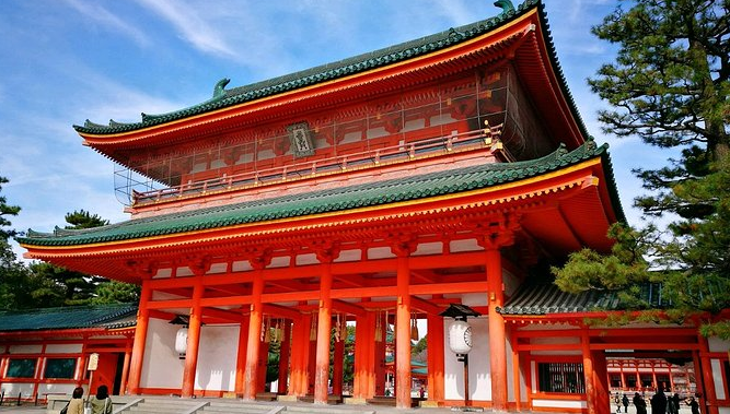 平安神宮:平安神宮是位于日本京都府京都市的神社,主祭神是第50代桓武天皇和第121代孝明天皇。明治28年(1895年)3月15日,為紀(jì)念桓武天皇平安遷都1100周年,平安神宮創(chuàng)建。昭和15年(1940年),為紀(jì)念日本建國(guó)2600周年,平安京末代天皇:孝明天皇合祀。平安神宮的建筑是模仿平安時(shí)代皇宮的部分建筑修建的。