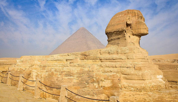 金字塔:世界公認的“古代世界八大奇跡”之首,相傳是古埃及法老(國王)的陵墓,但是考古學家從沒有在金字塔中找到過法老的木乃伊。陵墓基座為正方形,四面則是四個相等的三角形(即方錐體),側(cè)影類似漢字的“金”字,故漢語稱為金字塔。是人類至今最大的建筑群之一,早已成為古埃及文明最有影響力和持久的最大象征。在埃及境內(nèi)已發(fā)現(xiàn)的110座金字塔中,吉薩高地的祖孫三代金字塔—胡夫金字塔、哈夫拉金字塔和門卡烏拉金字塔是最古老的金字塔。(可自費進入金字塔內(nèi)部參觀)