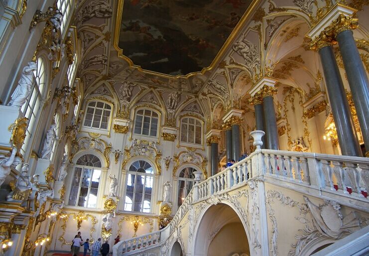 【冬宮】世界四大博物館之一艾爾米塔什博物館,與巴黎的盧浮館、倫敦的大英博物館、紐約的大都會藝術博物館齊名。該館**早是葉卡特琳娜二世女皇的私人博物館。