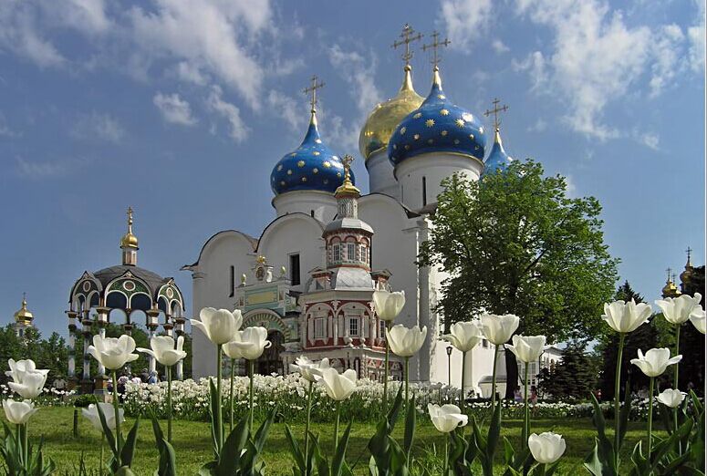 08:30乘車出發(fā)前往莫斯科郊外小鎮(zhèn)—謝爾蓋耶夫鎮(zhèn),游覽三圣教堂(游覽時間約1小時) 包括三圣教堂、杜霍夫斯基降靈教堂、圣母升天教堂,教皇宮殿和斯摩棱斯克教堂(1748年),以及齋房、鐘樓、慈善醫(yī)院等。其中**著名的三圣教堂建于1423-1442年,是俄羅斯早期白石建筑藝術典范。