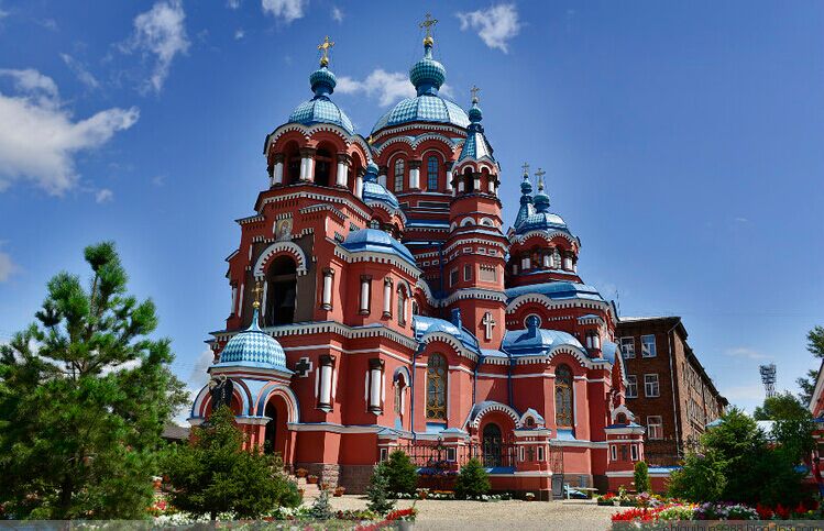酒店早餐后,參觀喀山教堂(入內(nèi)15分鐘)是伊爾庫(kù)茨克市內(nèi)70幾座教堂中**精美的一座??ι酱蠼烫媒ㄖ始t色,外形華麗,色彩鮮艷。圓頂、窗框和房頂有好看的藍(lán)色點(diǎn)綴。不僅外觀宏偉,教堂內(nèi)部更是精美絕倫。東正教是畫(huà)像崇拜,所以在教堂里面沒(méi)有雕塑,有的就是豐富而精美的壁畫(huà),一幅一幅,高高在上地講述著一個(gè)又一個(gè)來(lái)自天堂的故事。前往著名的130商業(yè)區(qū),這里有很多特色的俄羅斯工藝品商店,紫金,琥珀等,大家可以選購(gòu)自己喜歡的東西,晚餐后,乘車前往機(jī)場(chǎng)。