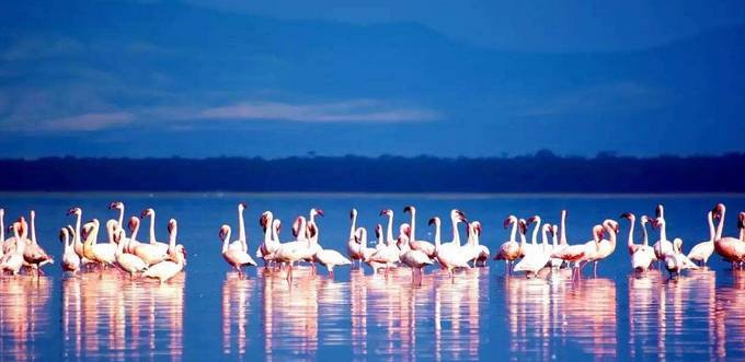是東非大裂谷中的一個(gè)長(zhǎng)65公里的咸水湖,面積188平方公里,是專門為保護(hù)禽鳥而建立的保護(hù)區(qū),被譽(yù)為“觀鳥天堂”。公園內(nèi)有450種鳥類,最著名的是火烈鳥?;鹆银B體羽白帶玫瑰色,飛羽黑色,覆羽深紅色,諸色相稱,非常艷麗。運(yùn)氣好時(shí)可觀賞到數(shù)百只火烈鳥振翅起舞,與落日紅霞、湖光倒影相映成趣。公園內(nèi)除鳥類外,還有許多野生動(dòng)物,包括非常稀有的白犀牛,此外還有長(zhǎng)頸鹿、野牛、羚羊、斑馬、鬣狗、疣猴、狒狒、狐貍等