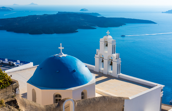 07:25 乘船赴圣托里尼島(這是一個充滿愛琴海古文明及浪漫美景的島嶼。在公元前的火山爆發(fā)中,把小島切成弦月型,吸引了現(xiàn)在前來尋找消失的亞特蘭提斯大陸的考古人潮及捕捉愛琴海特有白色小教堂配上藍(lán)天碧海的絕佳畫面)午晚餐自理